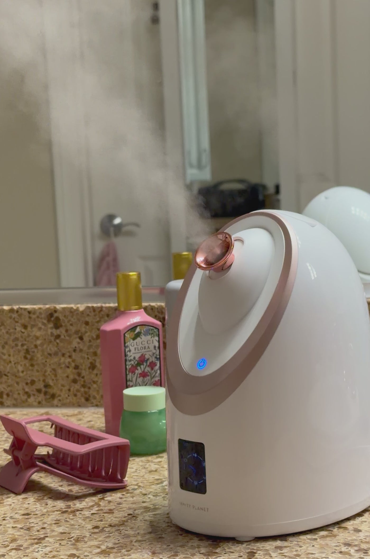 Spa-grade steam that deep-cleans pores and boots skincare absorption.