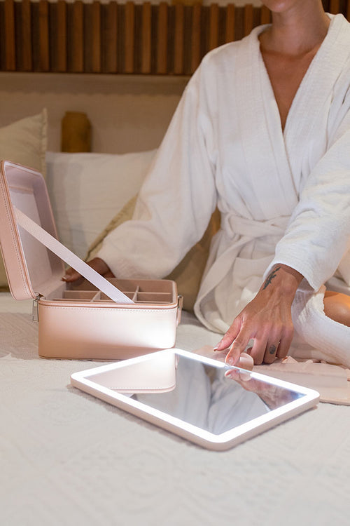 I could not love this makeup ‘tackle’ box any more than I do. It keeps everything lined up and neat and the rechargeable mirror is amazing. The handle that goes over the suitcase handle is the perfect finishing touch.