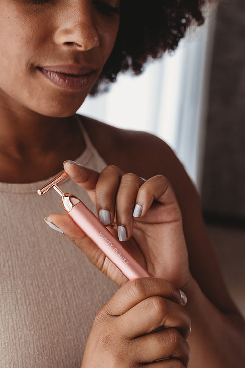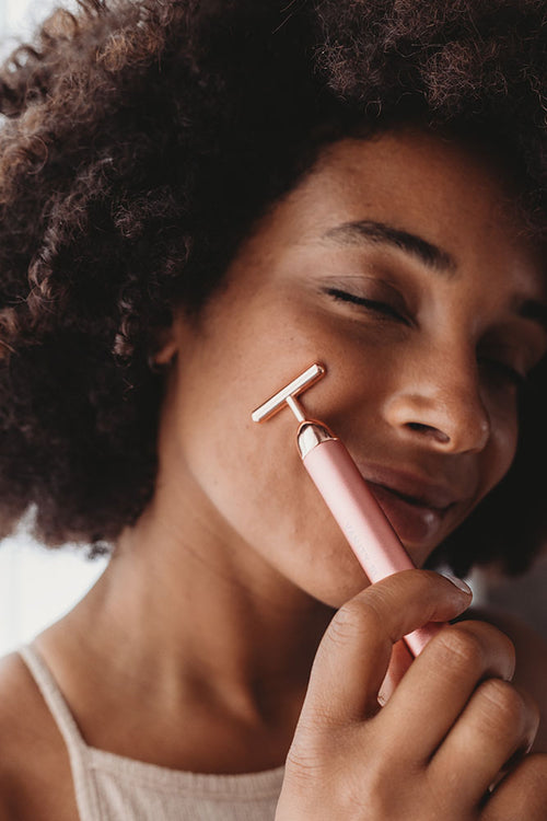 Define your features with TONA, the sonic sculpting beauty bar that uses gentle vibrations to massage, tone, and lift your skin. This T-shaped tool promotes lymphatic drainage, reduces puffiness, and improves the absorption of serums, giving you a firmer, more contoured appearance.
